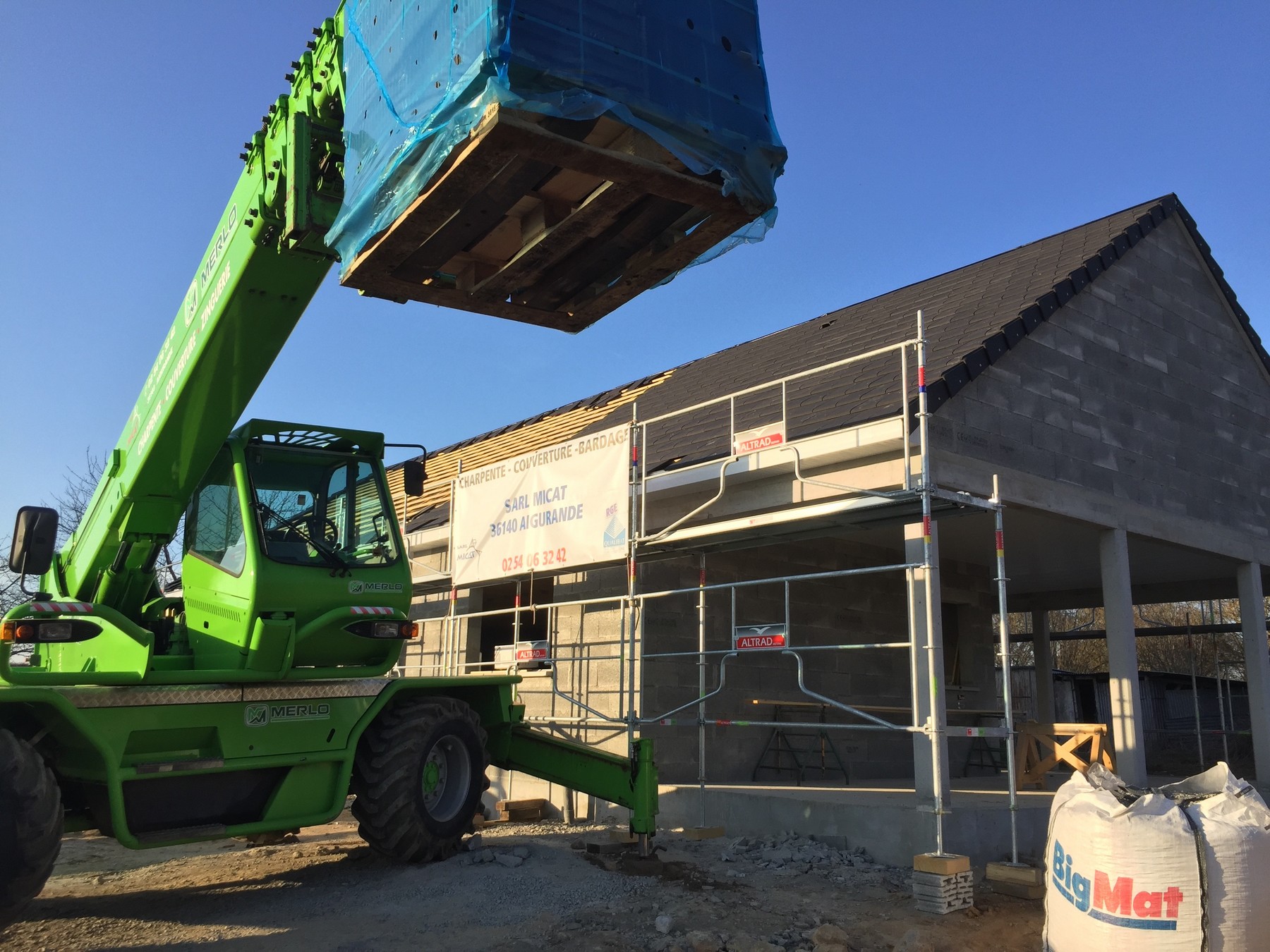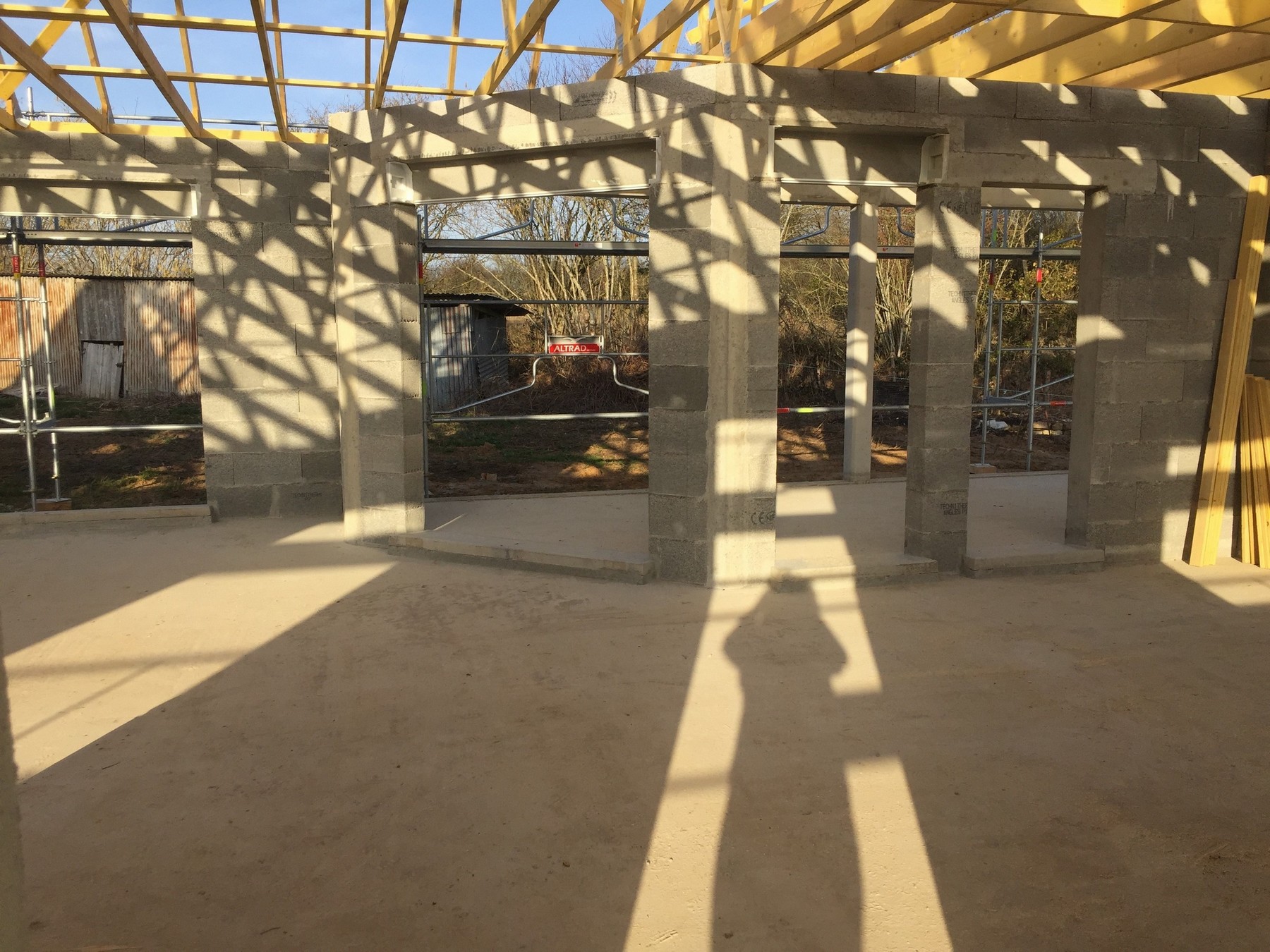 A peine quinze jours plus tard, les matériaux pour la construction arrivent sur le chantier et sont posés sur la dalle de la