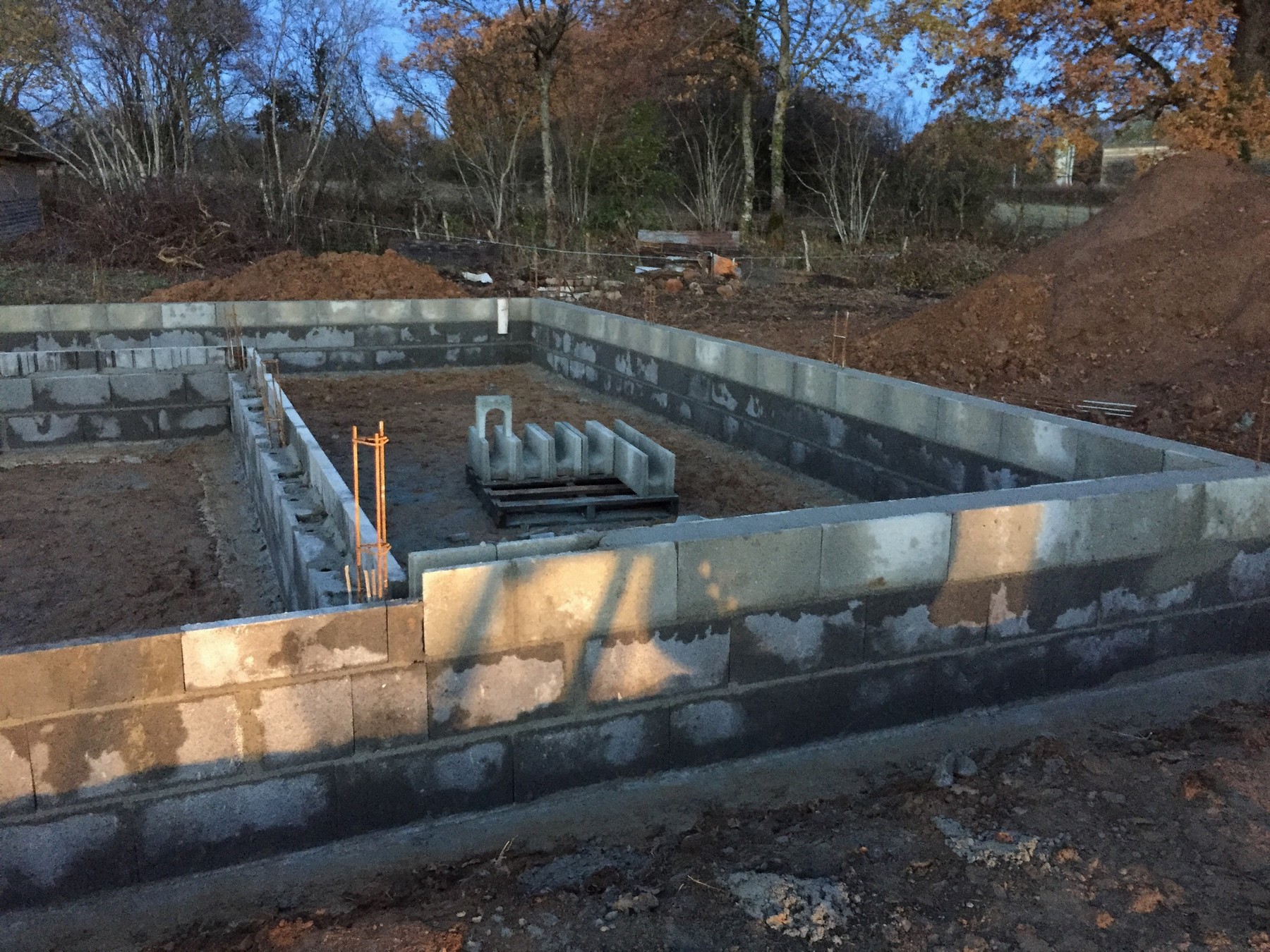 les murs construits pour le soubassement.