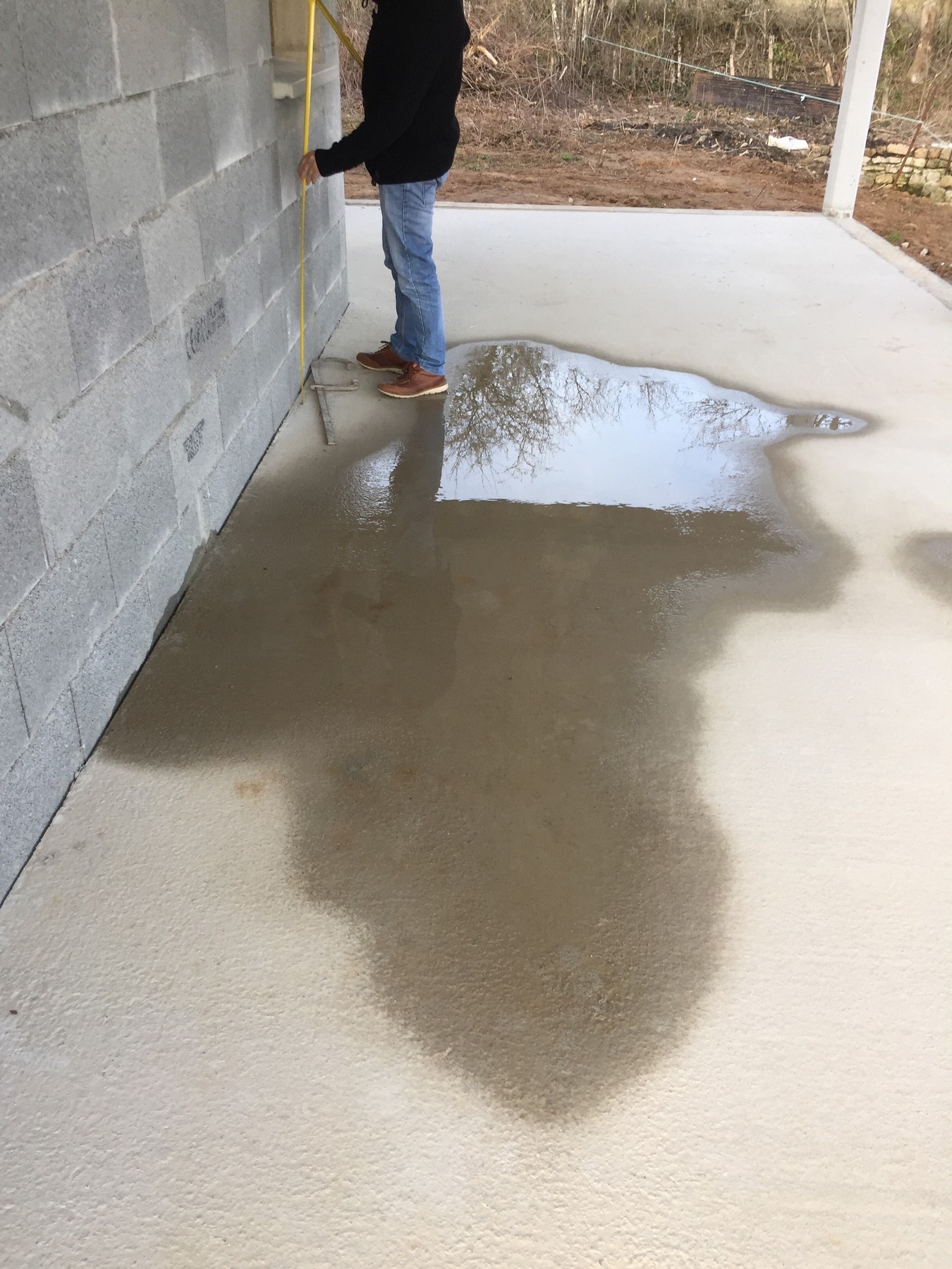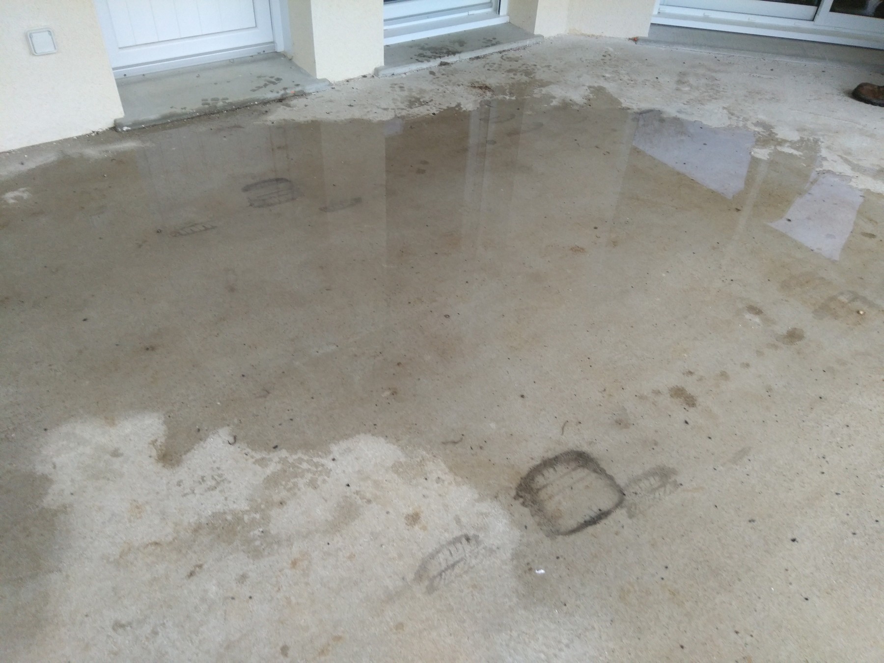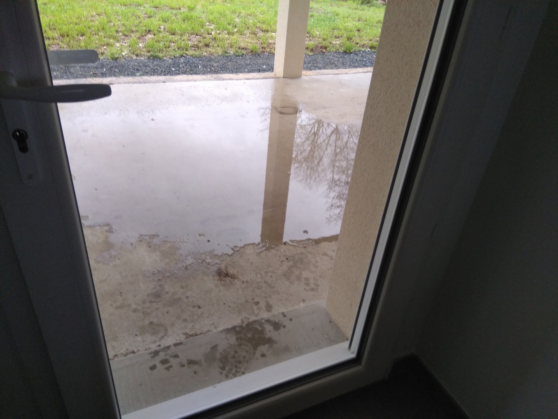 A ce jour notre terrasse retient l'eau en deux flaques dont l'une est située au niveau de la porte arrière de la partie habitation,