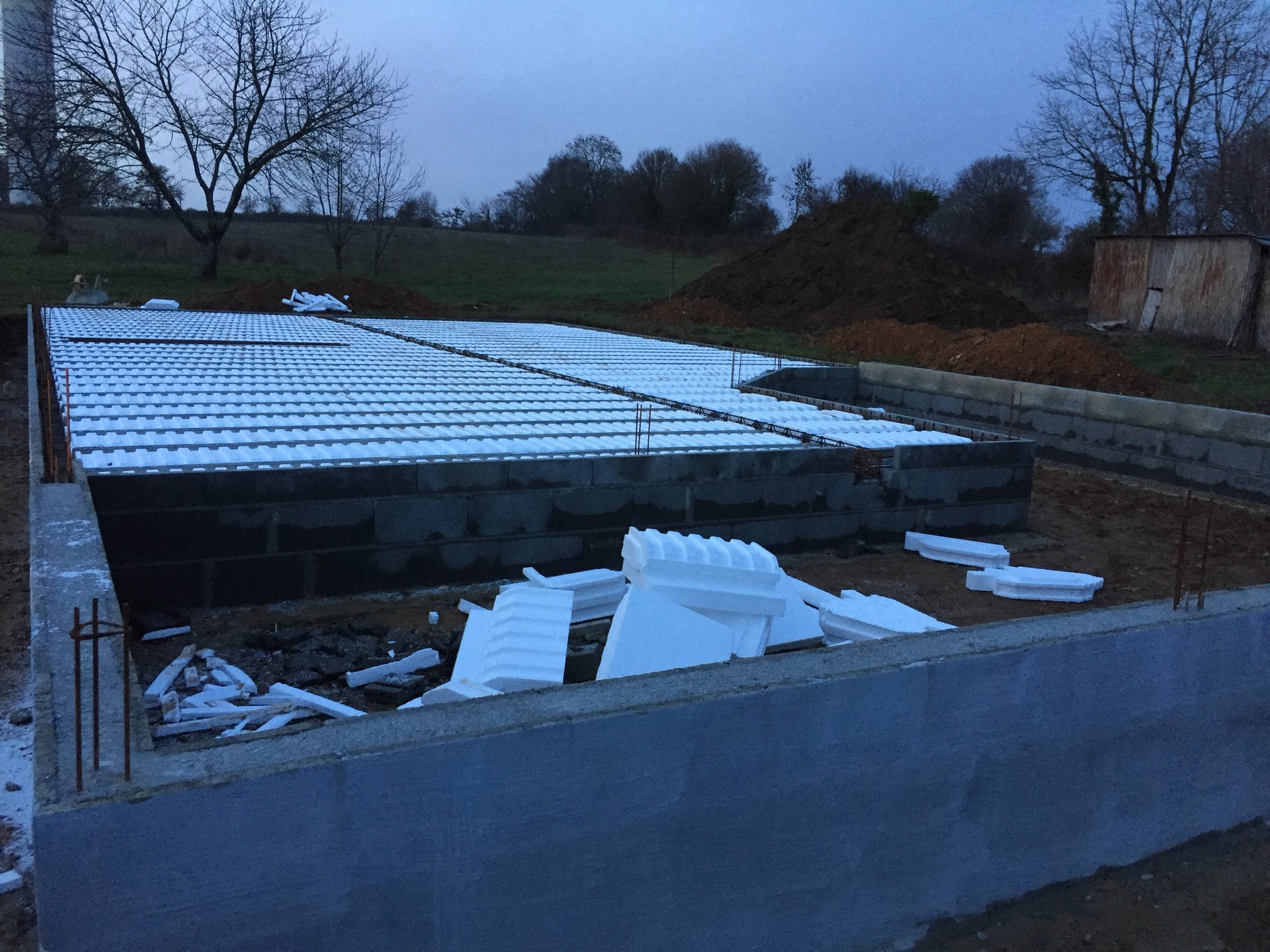 Le terrassier vient donc procéder au remblai le 20 décembre, le coulage étant prévu le lendemain avant le départ en
